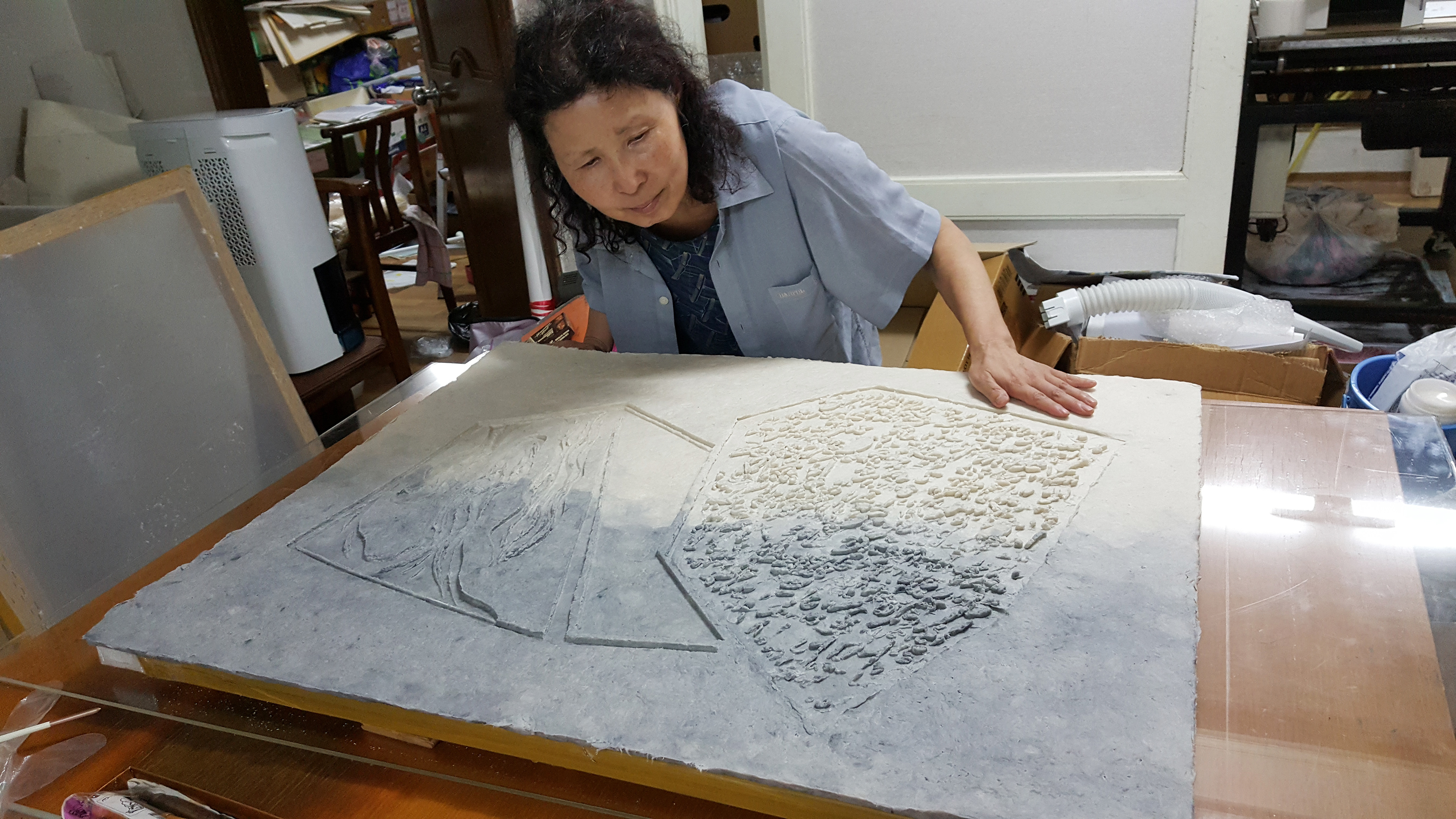 In my work, aspirations and utopian ideals gradually accumulate in layers, intertwining horizontally, supporting one another, and forming a cyclical structure. My recent focus on paper casting printmaking is inspired by past memories. These memories do not remain confined to the past but serve as bridges to the present, extending into external spaces. The spaces created through this process are surreal, sometimes even nonexistent, yet they evoke a strangely familiar yet distant sensation.